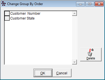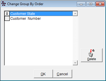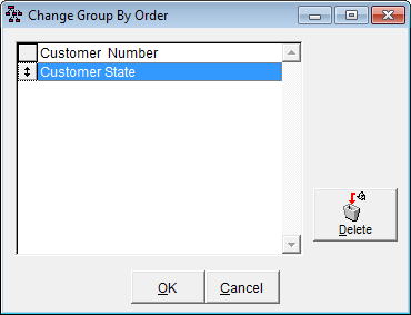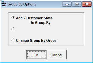 The second radio button in the Group By Options window is Change Group By Order. This allows the order to be altered after other fields have been added. Using the example above, the Group By Order can be altered to group by Customer State first.