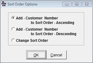 The third radio button in the Sort Order Options window is Change Sort Order. This allows the Sort Order to be altered after other fields have been added. Using the example above, the sort order can be altered to sort by Agency first in ascending sequence.
