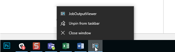 Alternatively, when the Job Output Viewer is open on your station, you can add it to your taskbar: right click the Job Output Viewer item on the Windows taskbar and select Pin to Taskbar.